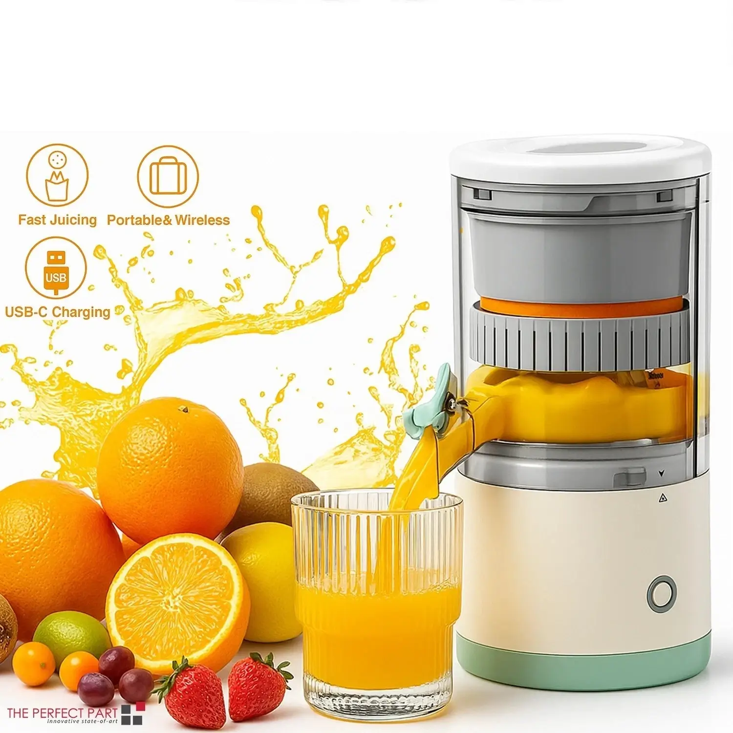 Rechargeable Electric Citrus Juicer – USB-C, Wireless, Portable Orange Juice