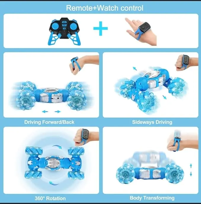 Stunt car lovers, get ready! Limitless excitement at your fingertips—controlled by remote or gesture watch.